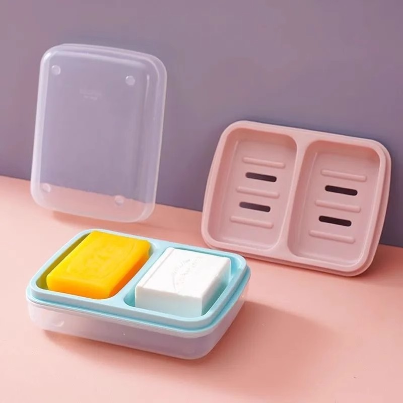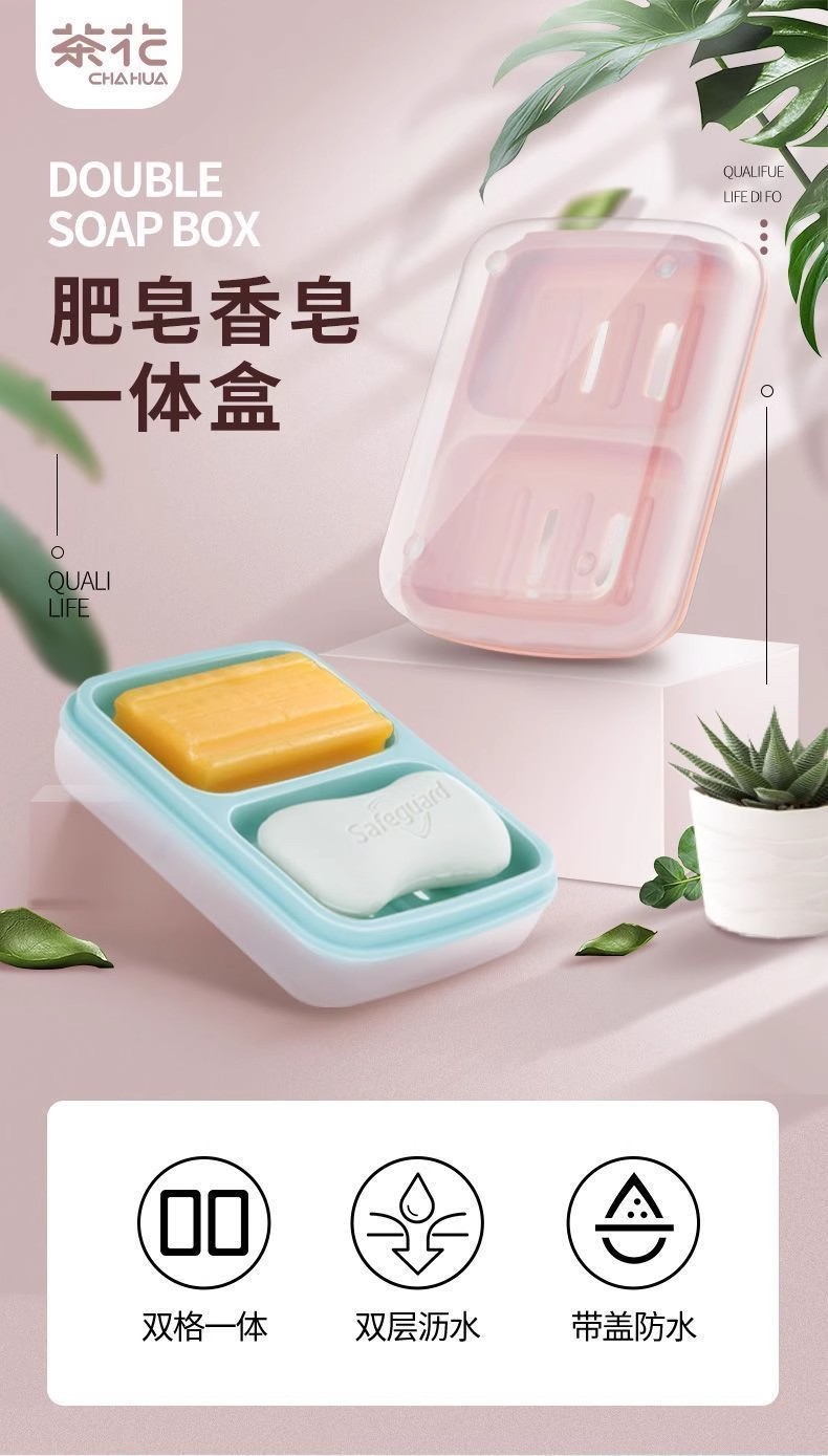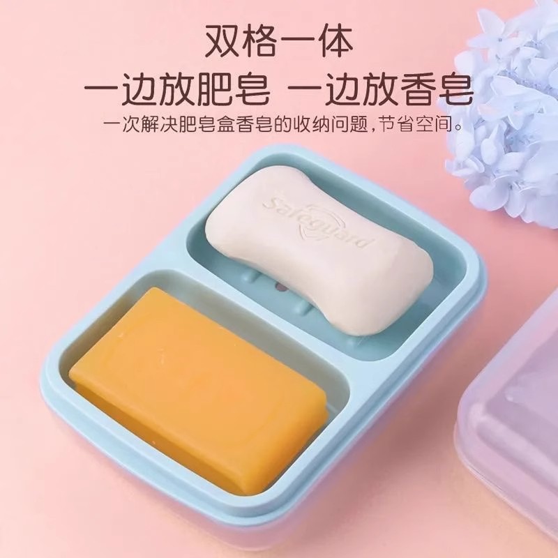 放肥皂盒学生宿舍香皂大号防水带盖子沥水双层手工皂双格不积水